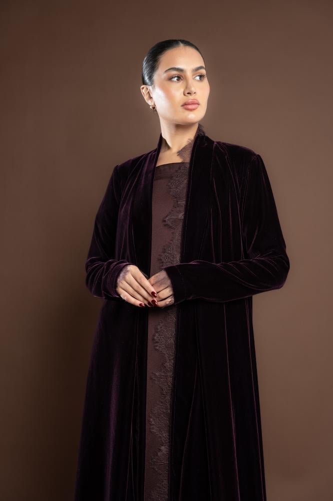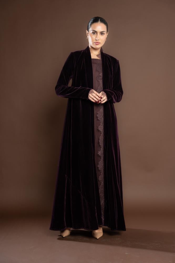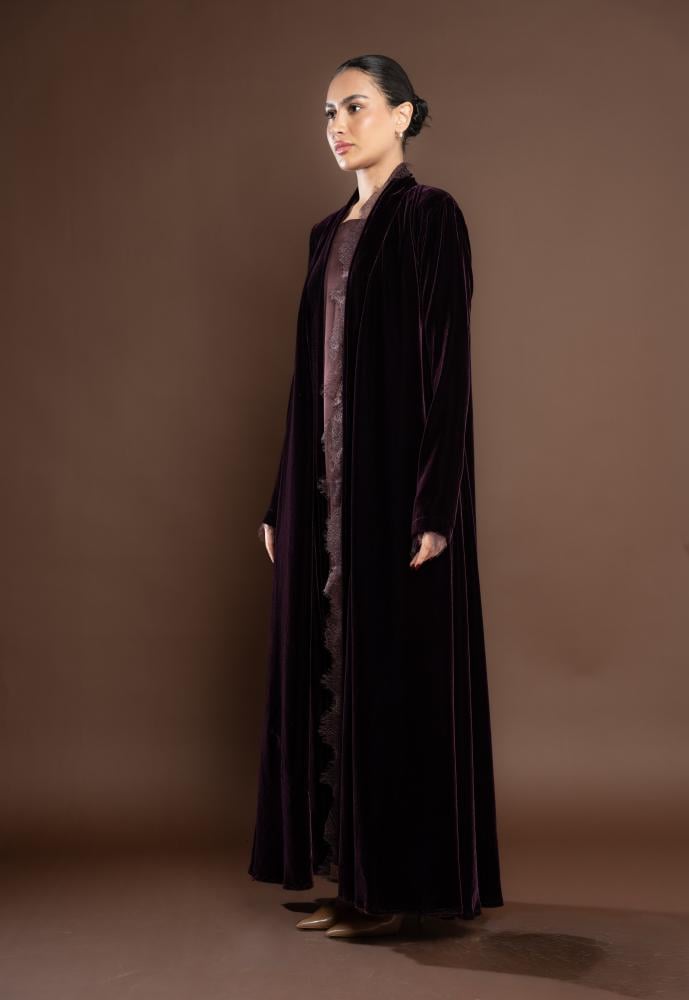 عباية دبل كلوش مخمل مع طرف دانتيل فرنسي